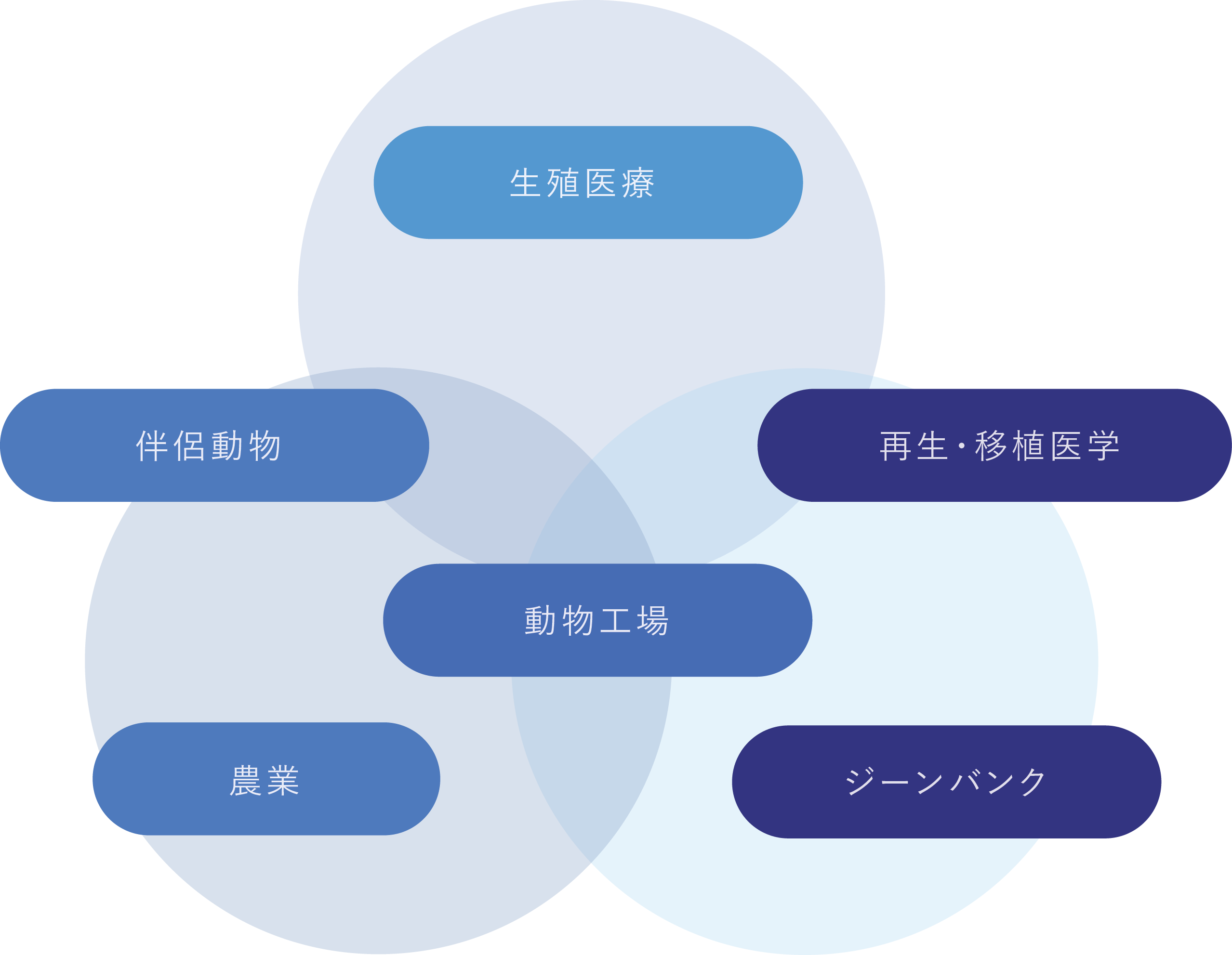 アニマル・バイオテクノロジーの基盤技術である発生工学は、農業・薬品・医療など様々な分野に活用されています。